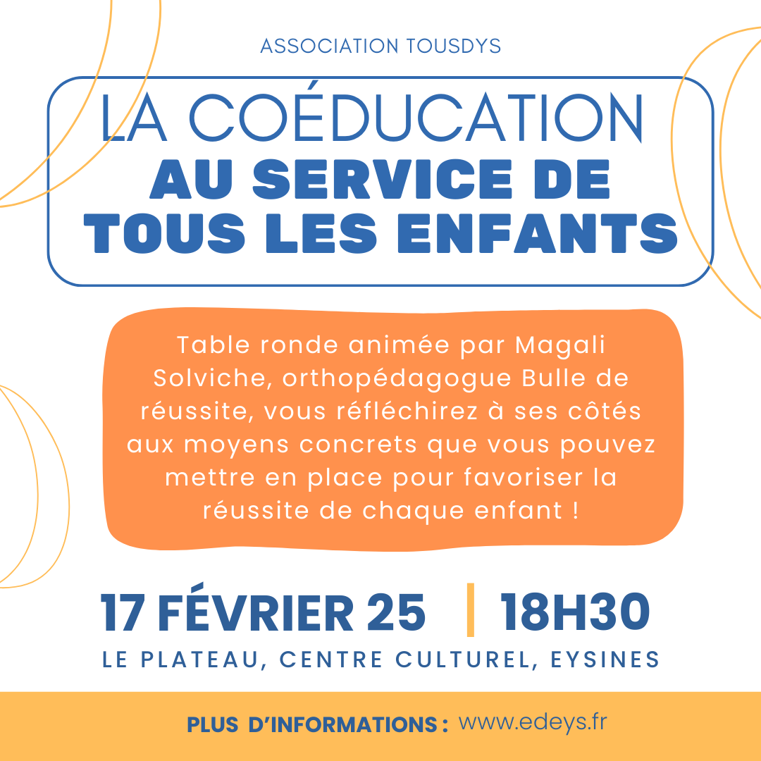 Inscriptions ici : https://www.helloasso.com/associations/tousdys/evenements/table-ronde-la-coeducation-au-service-de-l-inclusion-pour-tous-les-enfants-2
