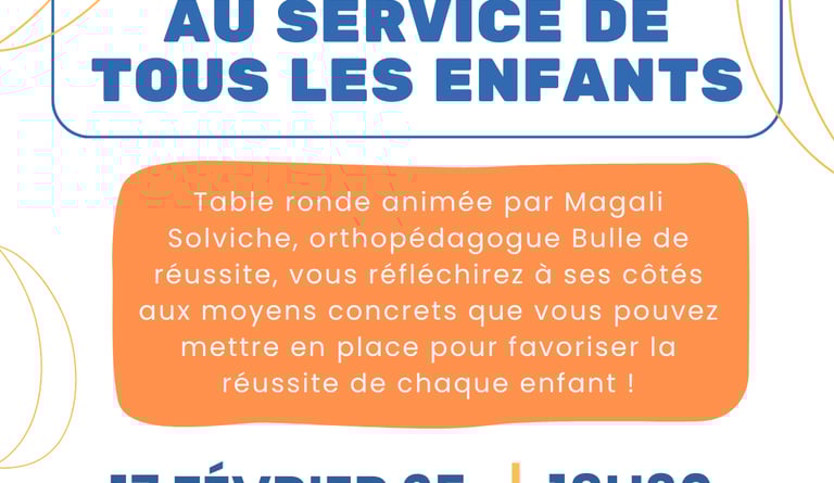 – La coéducation au service de l’inclusion, animée par Magali Solviche, orthopédagogue Bulle de réussite et membre de l’association TousDys. Vous pourrez réfléchir à ses côtés aux moyens concrets que vous pouvez mettre en place pour favoriser le développement et la réussite de chaque enfant et adolescent. Valoriser le lien entre la famille et l’école pour garantir une inclusion scolaire efficace et épanouissante. Vous pourrez échanger avec elle sur les outils et bonnes pratiques afin de continuer à travailler main dans la main avec l’école pour offrir à vos enfants les meilleures chances de réussite.